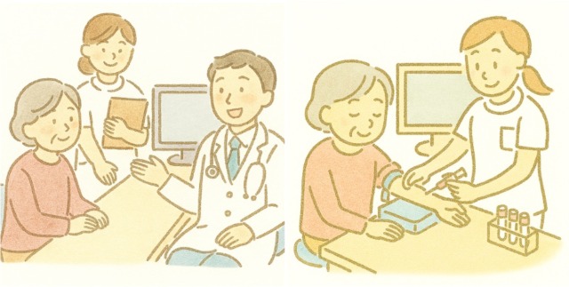 ①診察後、採血と身長・体重を測り骨密度検査の予約をします。(採血結果は約1週間要します)